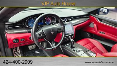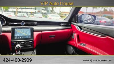 Presenting the 2018 Maserati Quattroporte GTS GranSport, a luxurious sedan that offers a perfect blend of performance and style. Under the hood, you'll find a robust 3.8L Twin Turbo V8 engine, delivering an impressive 523hp and 524ft. lbs. of torque. The exterior is finished in a sleek Nero color, while the interior boasts a sophisticated Rosso theme.